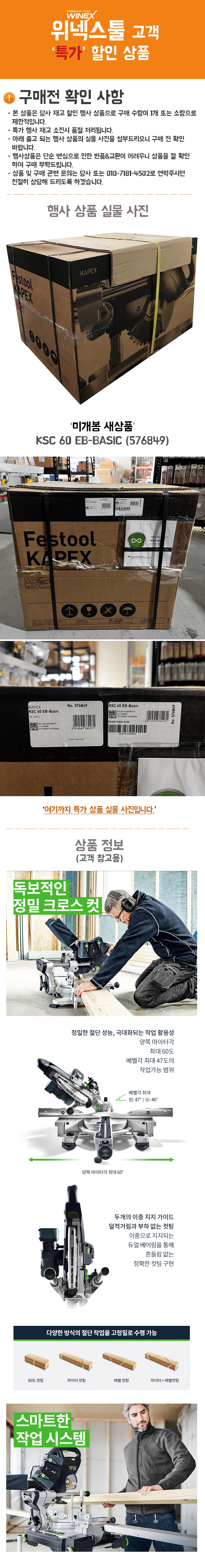 > 새상품 페스툴 충전 슬라이딩 마이터쏘 KSC 60 EB-Basic (576849)